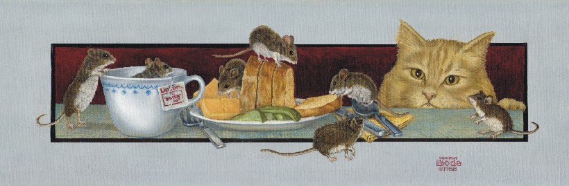 "MIDNIGHT SNACK" oil on canvas 12"x 20" SORRY ORIGINAL WAS SOLD, but proof prints are still available